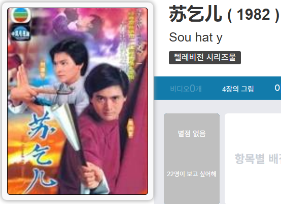 | [TV] 香城浪子 (1982)Soldier of Fortune 주성치 출연작 (3) | 2025.08.05 |