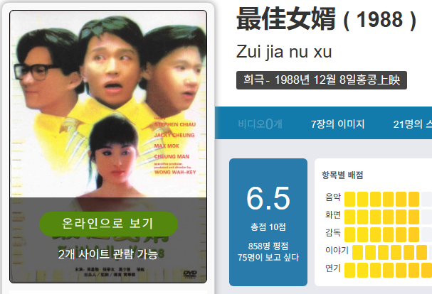 《최고의 사위》는 장하이싱이 각본을 쓰고 황화치가 감독하며, 주성치, 장학우, 모소총, 장민 등이 주연한 코미디 영화입니다.1988년 12월 17일 홍콩에서 개봉.이 영화는 주로 미용사 지아카이, 패션 디자이너 안룡, 그리고 풍수쟁이 라이푸딩이라는 세 명의 절친한 친구를 다루고 있으며, 이들은 모두 인근 미용실 주인의 딸 아영에게 매료되었습니다.그녀의 마음을 사로잡기 위해 세 사람은 최선을 다해 열띤 추격전을 펼쳤습니다.